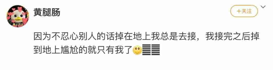 哈哈,为了不让话掉在地上,一般自嘲或者开玩笑去接话,结果周围人不领情 我自己变成了那个小丑@wasland